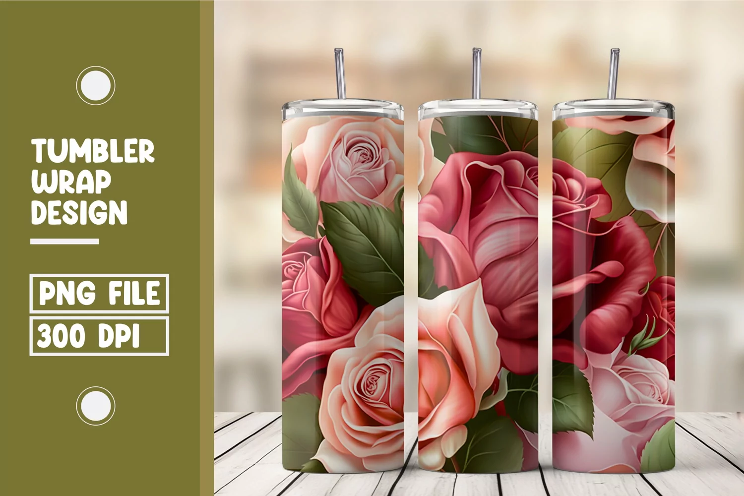 Rose flowers tumbler wrap design example image 1