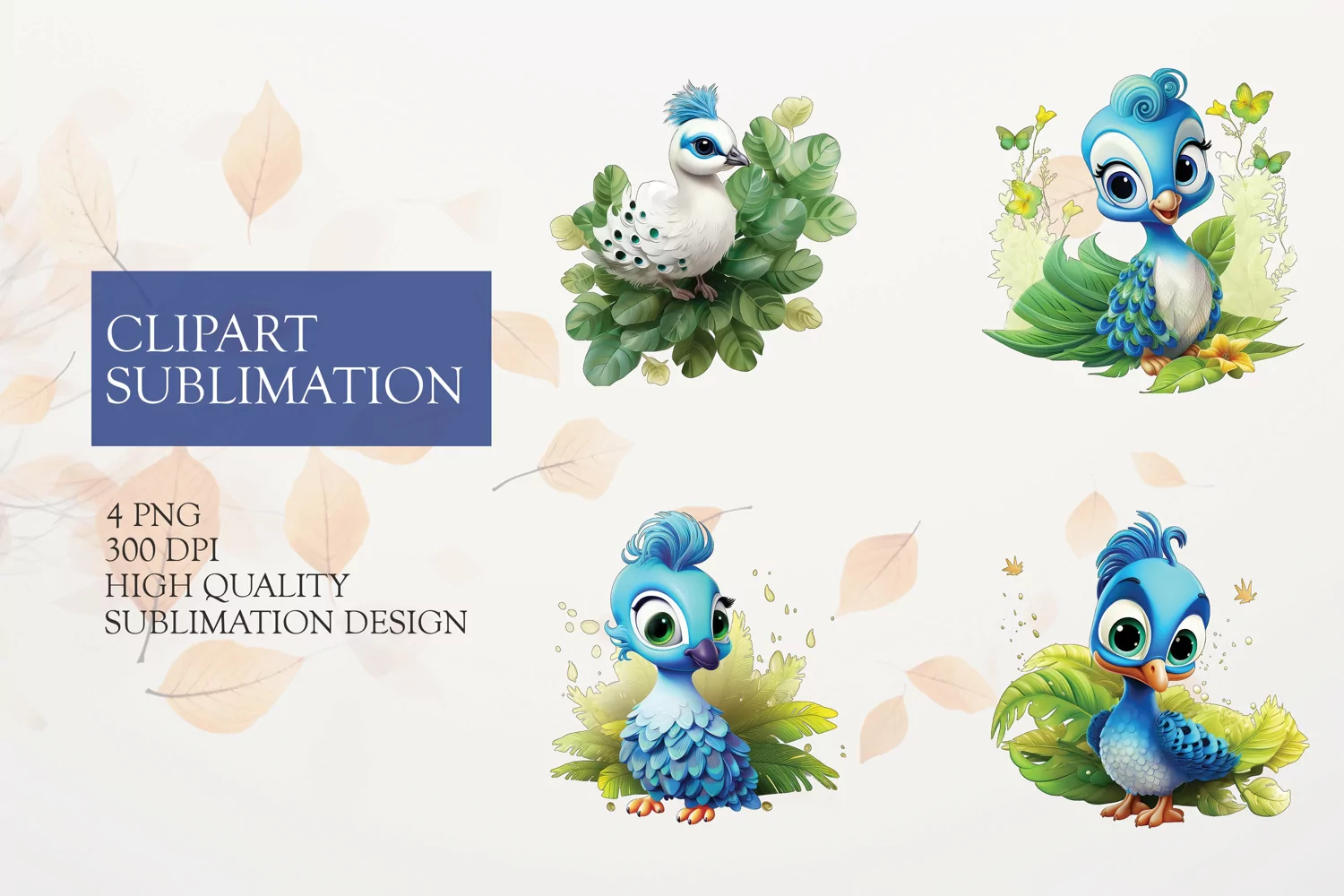 Cute baby 3d peacock cartoon clipart design example image 1
