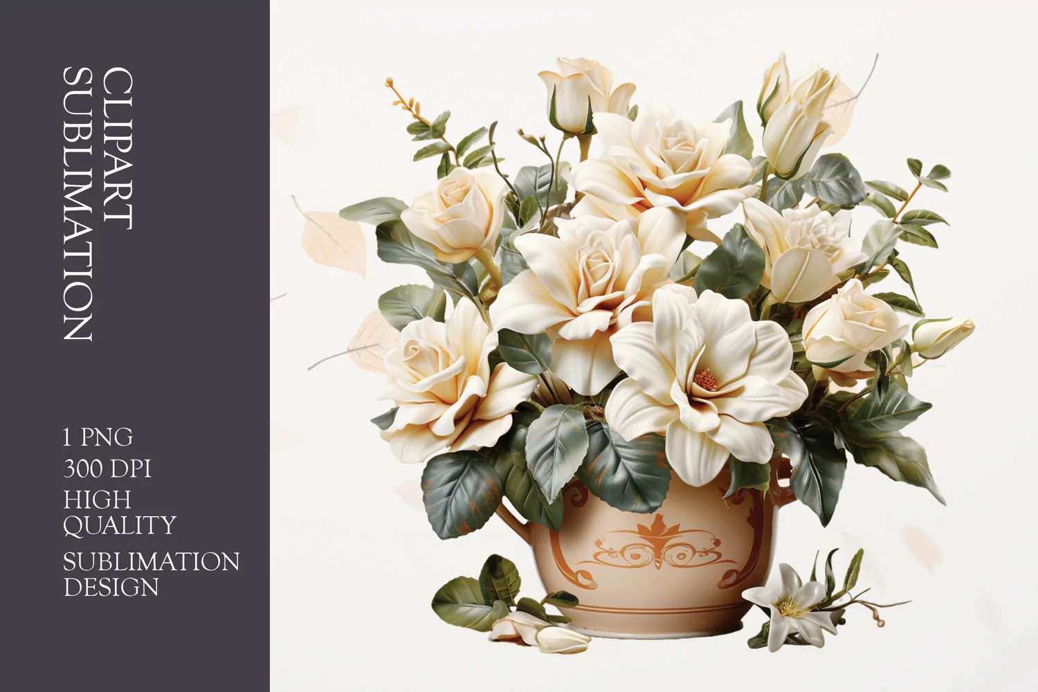 Digital Art Botanical Clipart Potted Flowers Floral Illustration White Roses Sublimation Design Sublimation Transfer Design Graphics For Sublimation Pot Clipart Decorative Plant