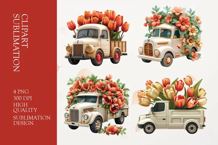 Similar Design Products to Truck with Flowers Clipart sublimation