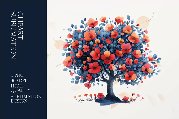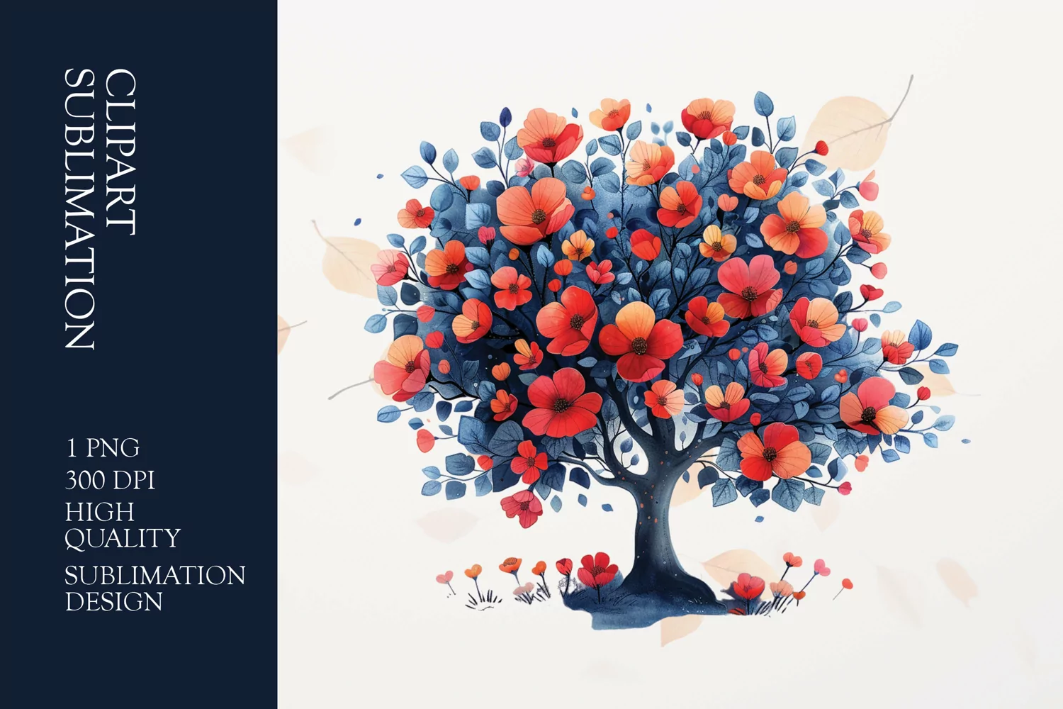 Instant DownloadPrintable TransfersSublimation DesignPng DownloadBlue Tree ClipartWaterslide TransferBlue Tree PngMug TransfersBright WatercolourOf Life Sublimation