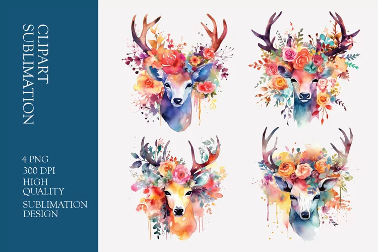 Similar Design Products to Watercolor Floral Deer Clipart Sublimation