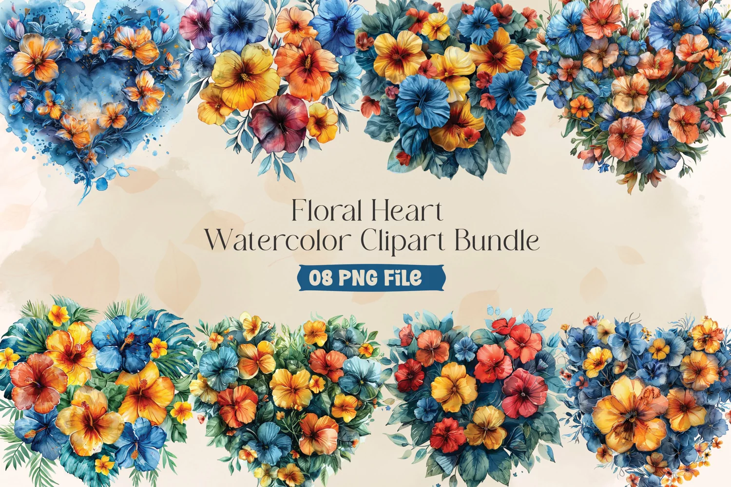 Watercolor Clipart Floral Heart Botanical Graphics Clipart Collection Sublimation Bundle Digital Design Elements Sublimation Graphics Bundle Heart-shaped Illustrations Romantic Floral Motifs Watercolor Heart Bouquet