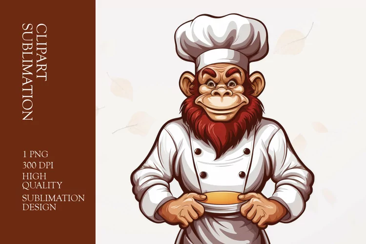 Chef Monkey Clipart Sublimation example image 1