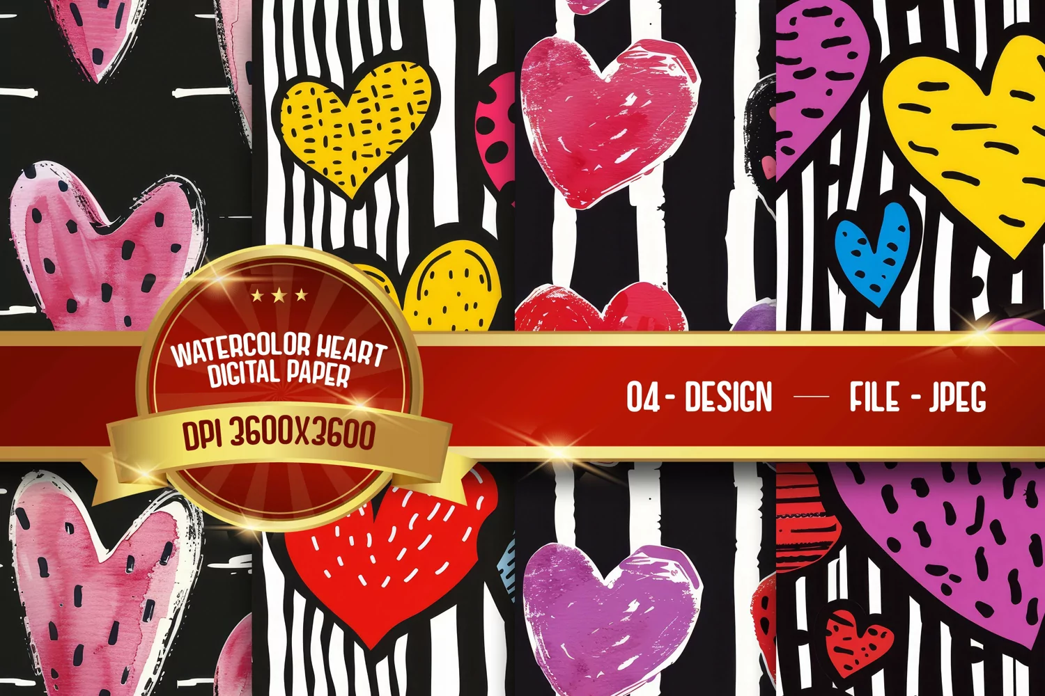 watercolor heart background digital paper
