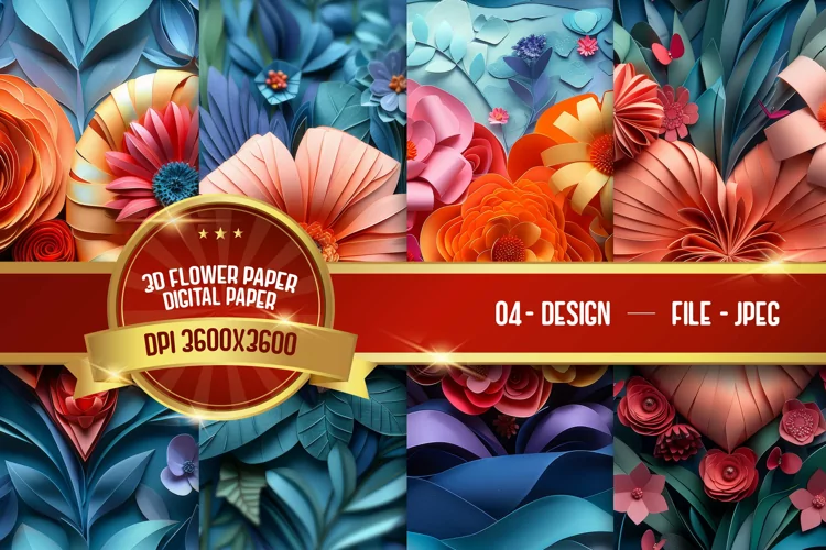 Floral Digital Paper Digital Background Digital Paper Pack Printable Paper Scrapbook Paper Digital Scrapbook Digital Download Flower Patterns Flower Digital Paper 3d Flowers Paper
