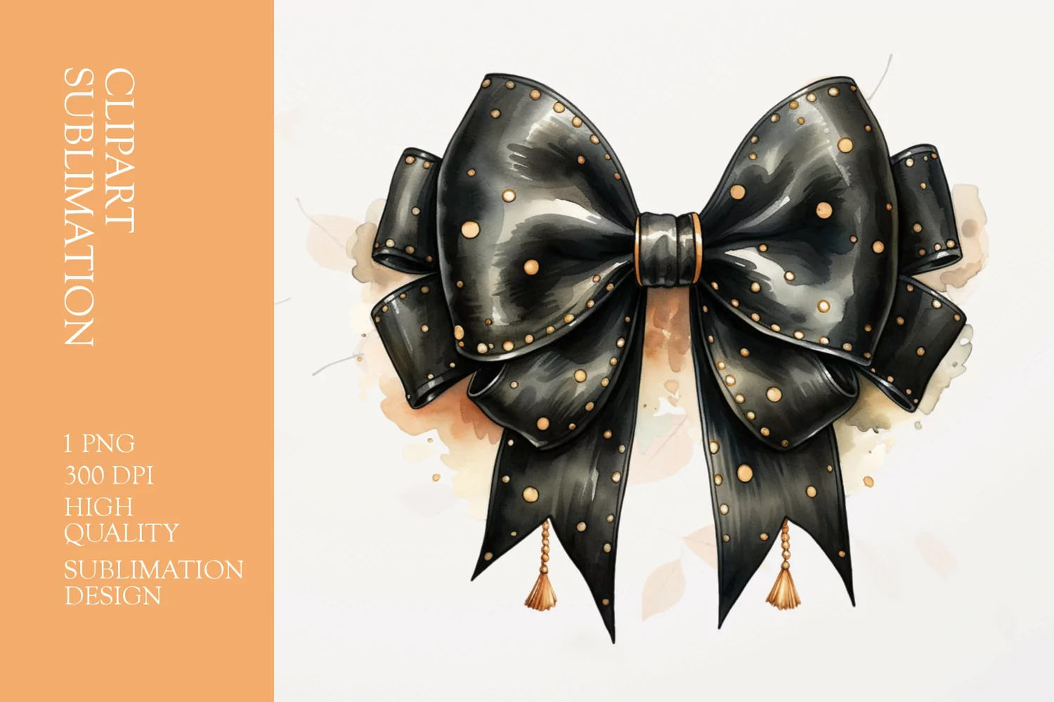 Watercolor Clipart Watercolor Element Bow Illustration Sublimation Design Sublimation Graphics Black Bow Digital Watercolor Art Black Ribbon Design Bow Clipart Set