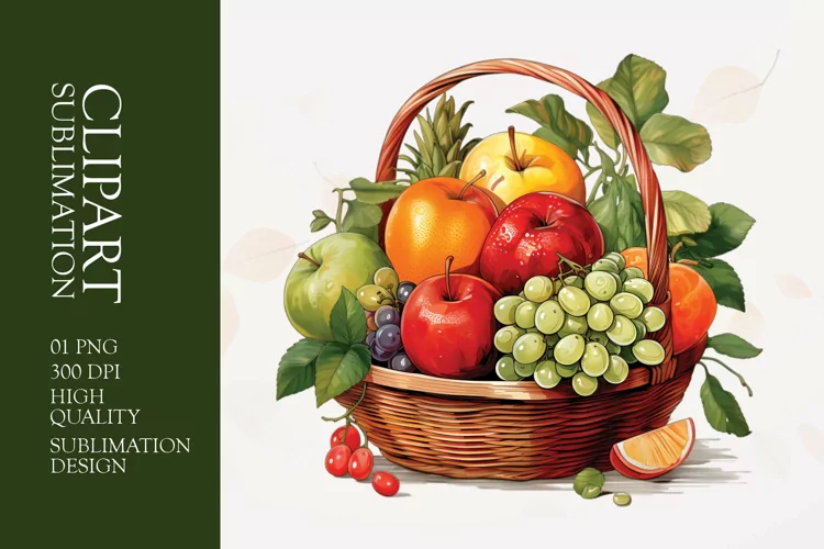 Watercolor fruit basket clipart sublimation