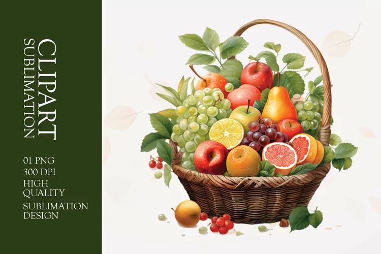 Watercolor fruit basket clipart sublimation