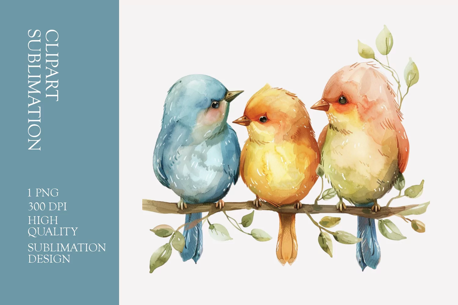 Cute baby birds watercolor clipart sublimation