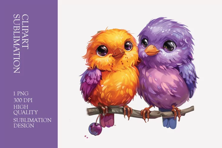 Similar Design Products to Two Cute Bird Watercolor Clipart Sublimation