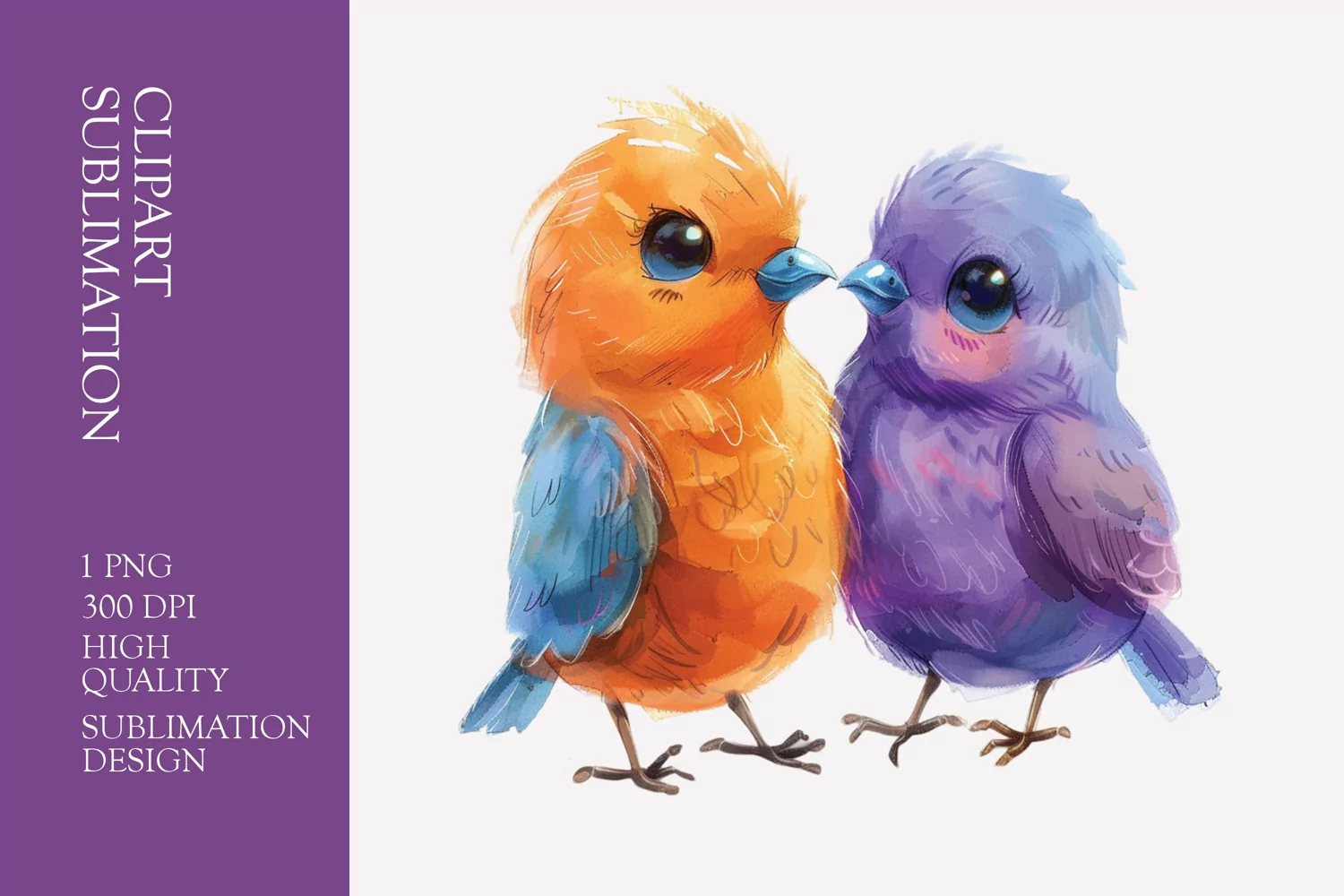 Two Cute Bird Watercolor Clipart Sublimation