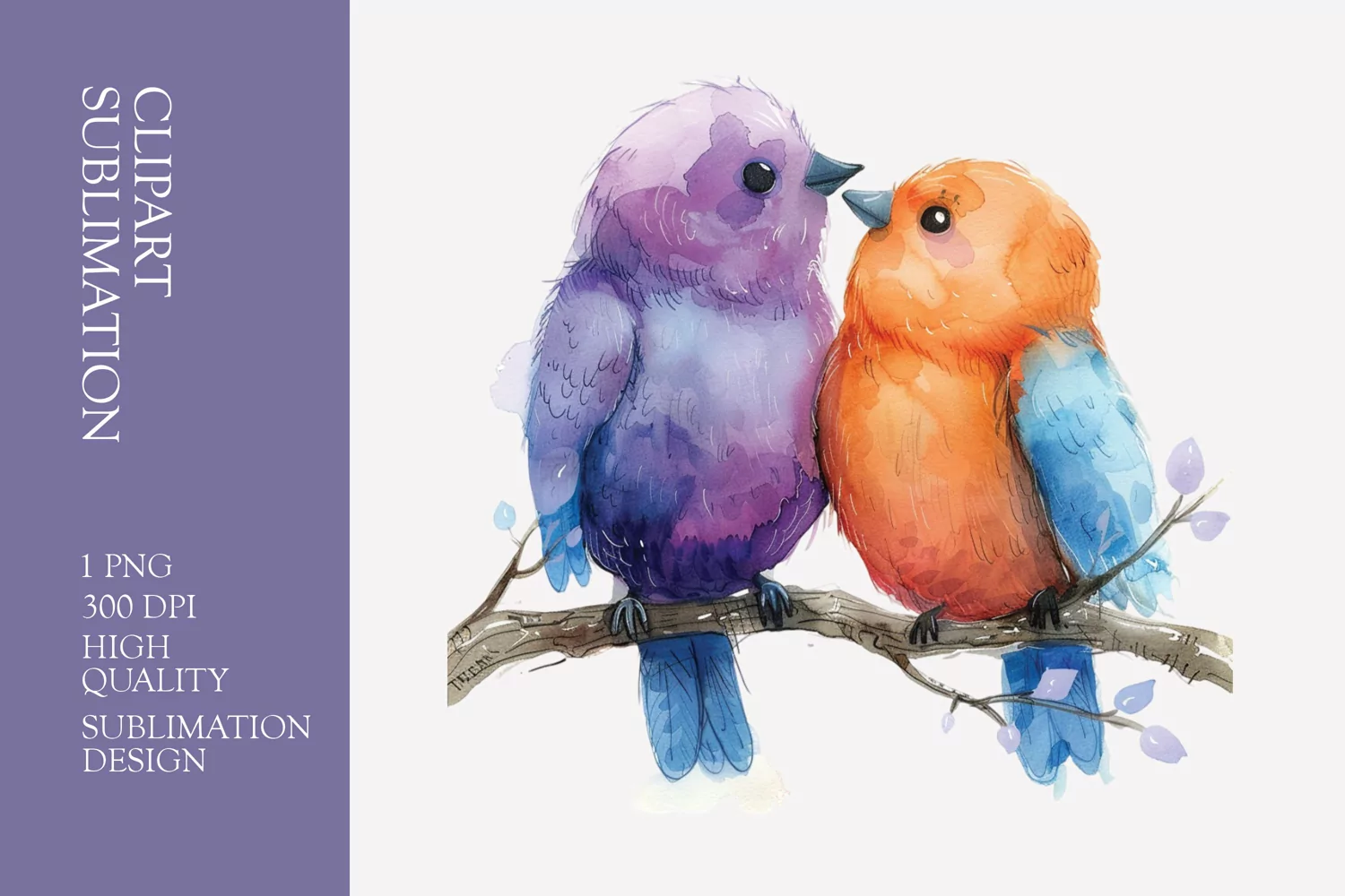 Similar Design Products to Two Cute Bird Watercolor Clipart Sublimation