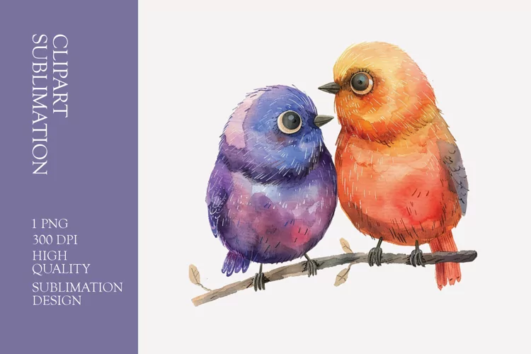 Similar Design Products to Two Cute Bird Watercolor Clipart Sublimation