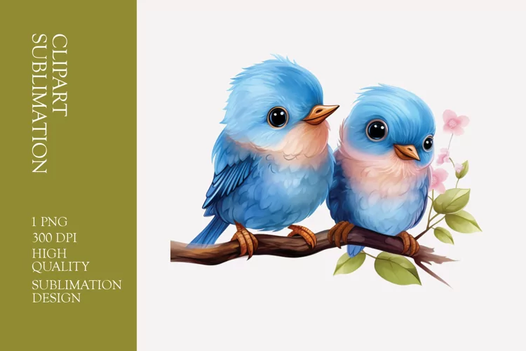 Similar Design Products to Two Cute Bird Watercolor Clipart Sublimation