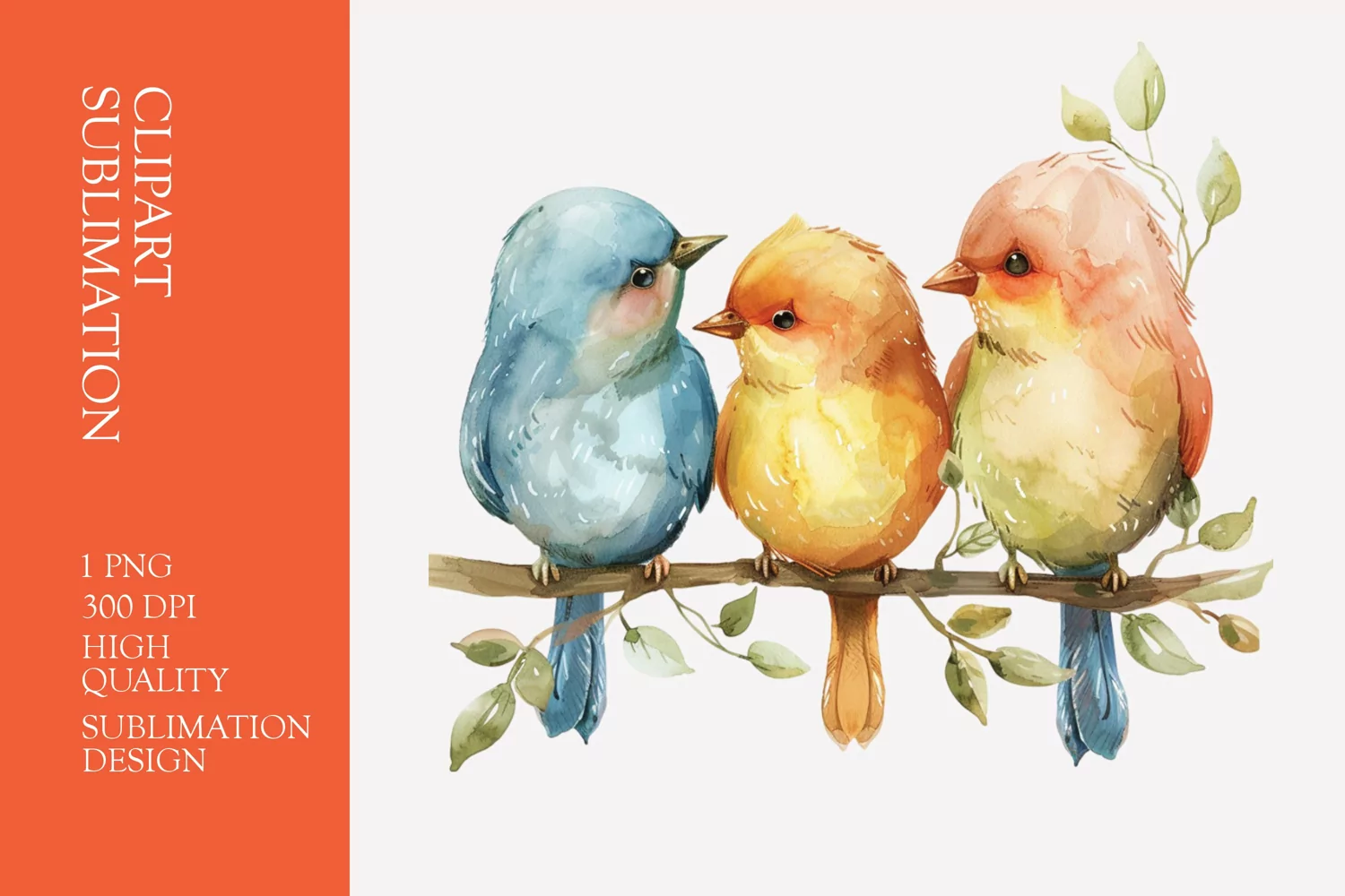 Cute baby birds watercolor clipart sublimation