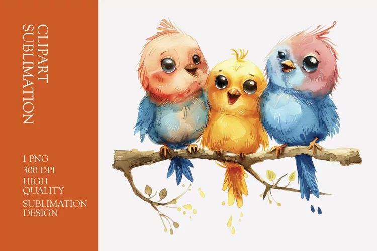 Cute baby birds watercolor clipart sublimation