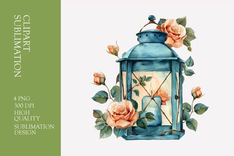Floral lantern watercolor clipart sublimation example image 1