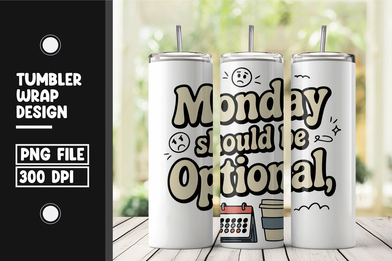Digital Download Funny Quote Trendy Design Coffee Humor Png Design Monday Should Be Optional Custom Tumbler Tumbler Wrap Drinkware Graphic Workweek Humor