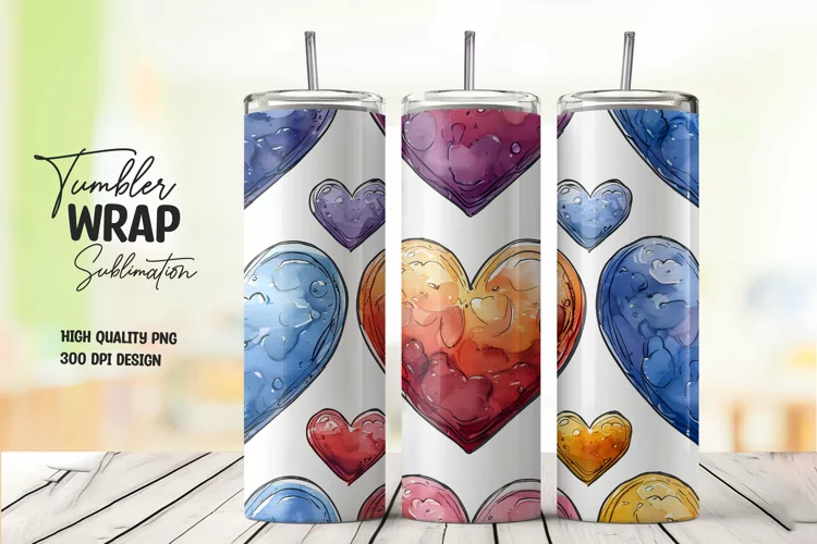 Watercolor heart pattern tumbler wrap sublimation