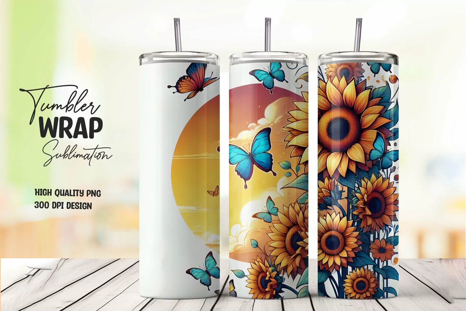 sunflower buttrefly tumbler wrap sublimation png