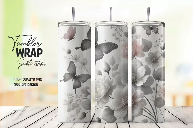 Floral Design Digital Download Png File Butterfly Pattern Sublimation Design Butterfly Art Nature Theme Elegant Pattern Tumbler Wrap Drinkware Decor