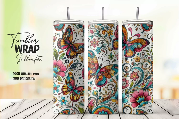 Floral Art Digital Download Png File Butterfly Pattern Sublimation Design Spring Theme Tumbler Wrap Nature-inspired Vibrant Design Drinkware Decoration