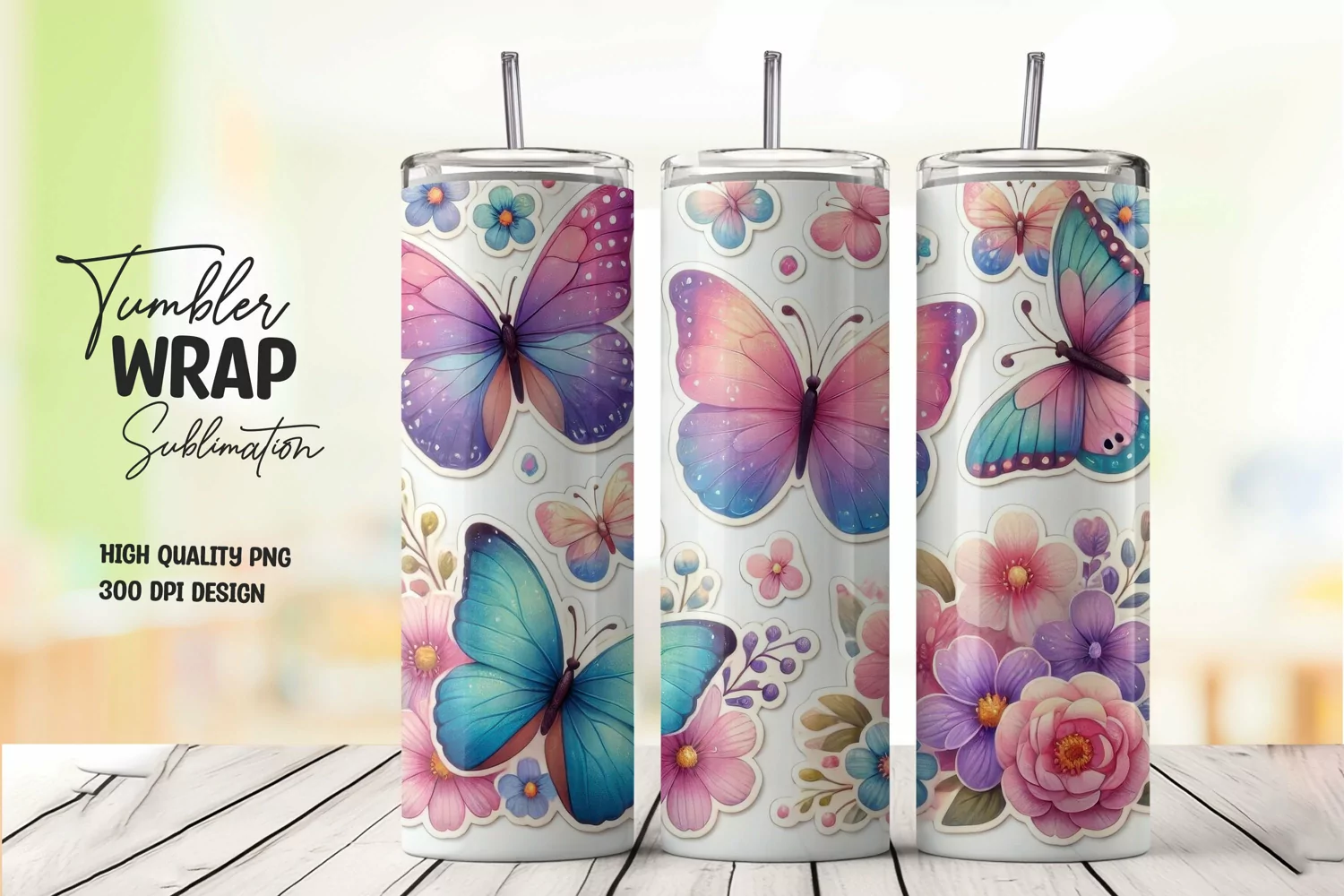 Floral Art Digital Download Png File Butterfly Pattern Sublimation Design Spring Theme Tumbler Wrap Nature-inspired Vibrant Design Drinkware Decoration