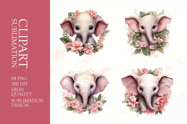 Watercolor floral elephant clipart sublimation png example image 1