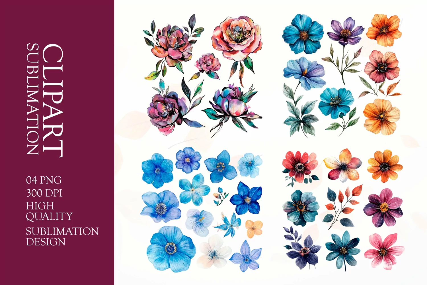 Watercolor floral clipart sublimation png