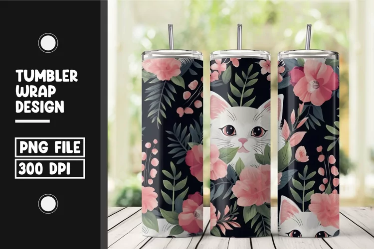 Sublimation Tumbler Wrap Sublimation Cat Tumbler Cat Tumbler Wrap Png Floral Cat Tumbler Wrap Floral Cat Tumbler Png Floral Pattern Tumbler Wrap Cat Design Sublimation Wrap Cute Floral Cat Design Floral Cat Drinkware Wrap Printable Cat Tumbler Wrap