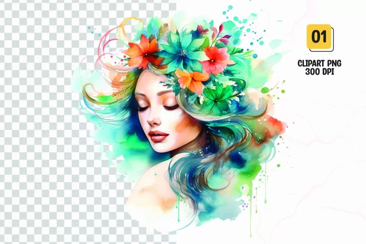 Similar Design Products to Watercolor floral girl head clipart sublimation png