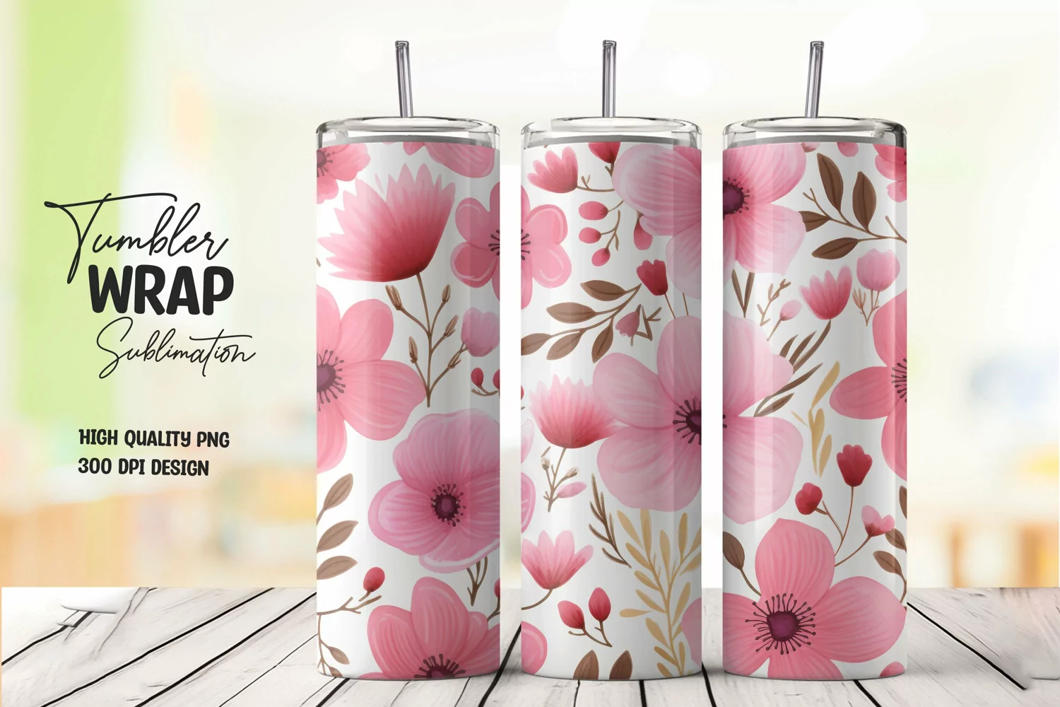 Watercolor flower pattern tumbler wrap sublimation png example image 1