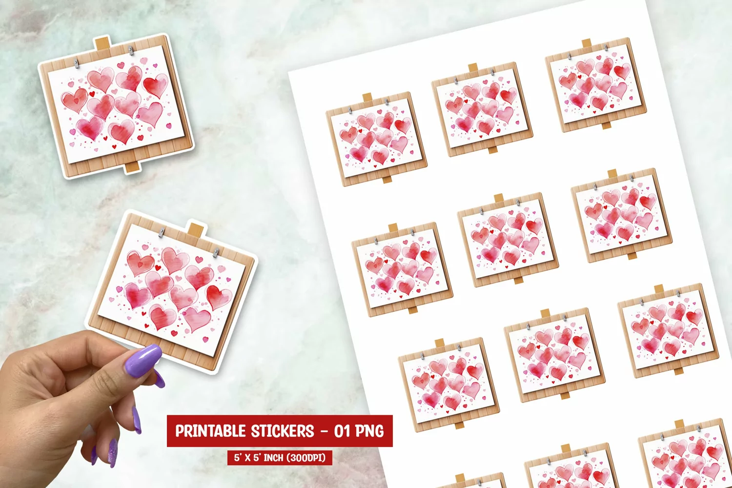 Watercolor valentine day signboard sticker png example image 1