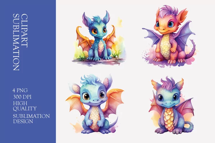 Similar Design Products to Baby dragon watercolor clipart sublimation