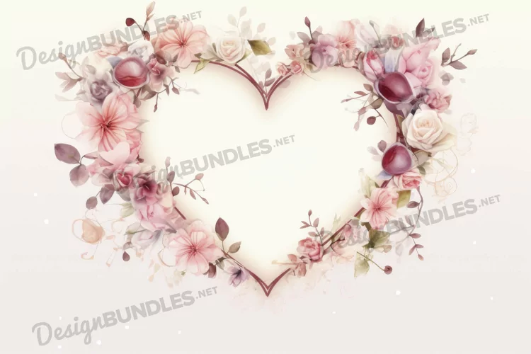 Floral heart frame Digital Paper, Floral heart Background example image 1