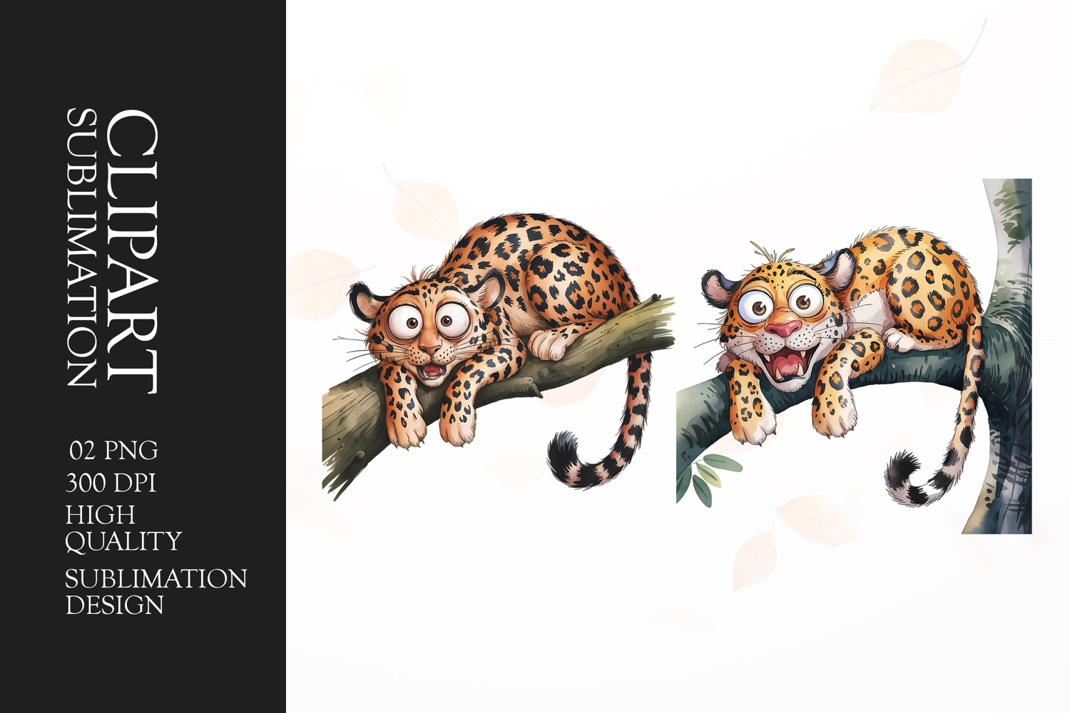Grumpy leopard watercolor clipart sublimation example image 1