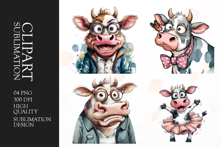 Similar Design Products to Grumpy funny cow watercolor clipart sublimation