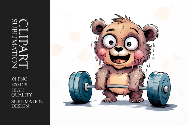 Grumpy Gym bear watercolor clipart sublimation