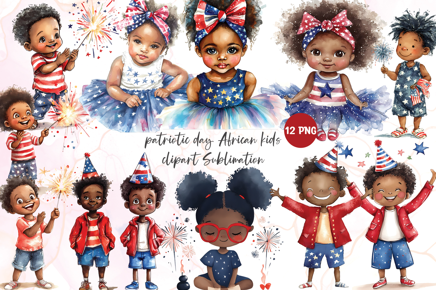 Kids Clipart African Clipart Patriotic Kids Independence Kids African Kids Watercolor Kids Kids Sublimation Cultural Clipart Patriotic Art Flag Kids