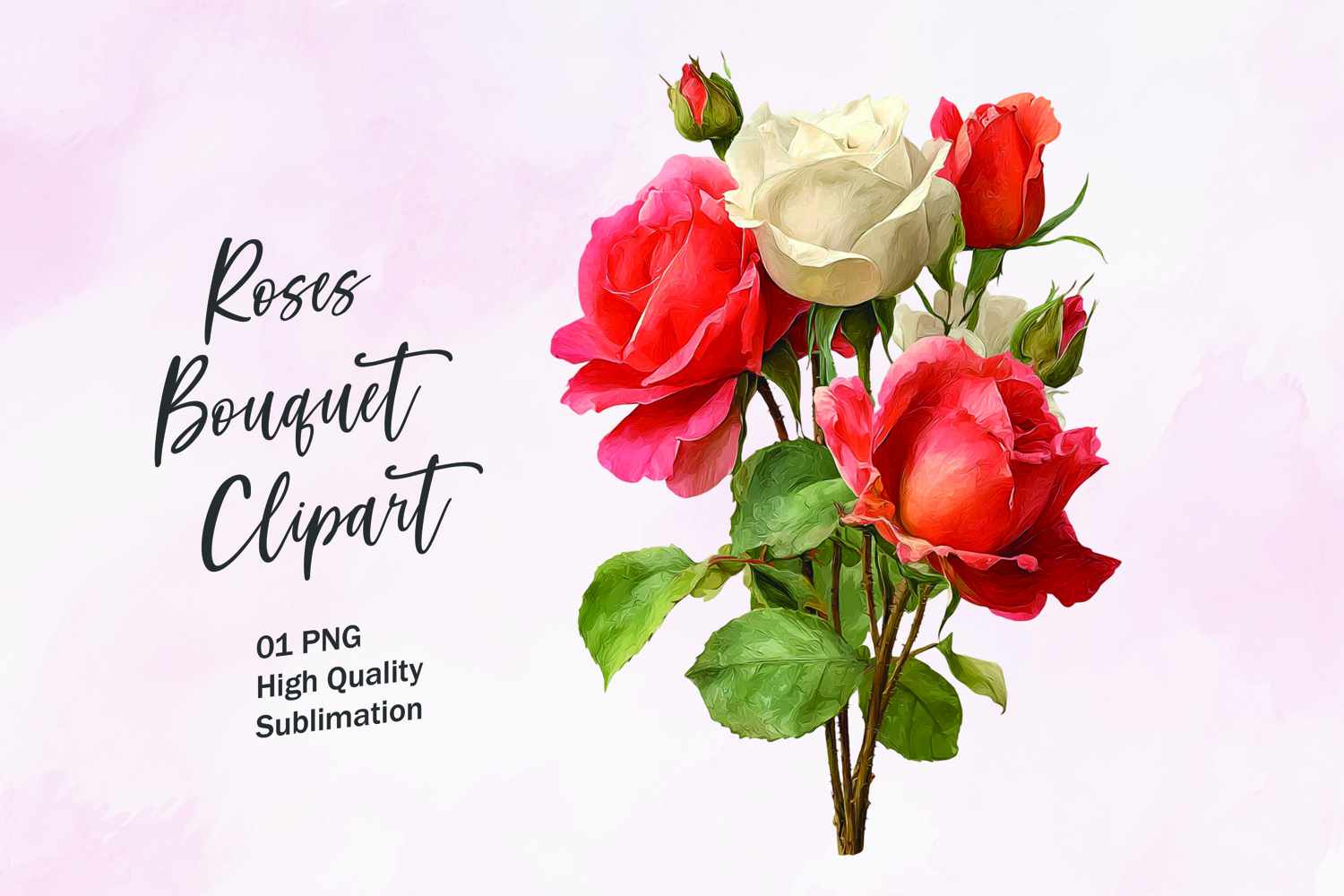 Rose Bouquet Clipart Sublimation PNG example image 1