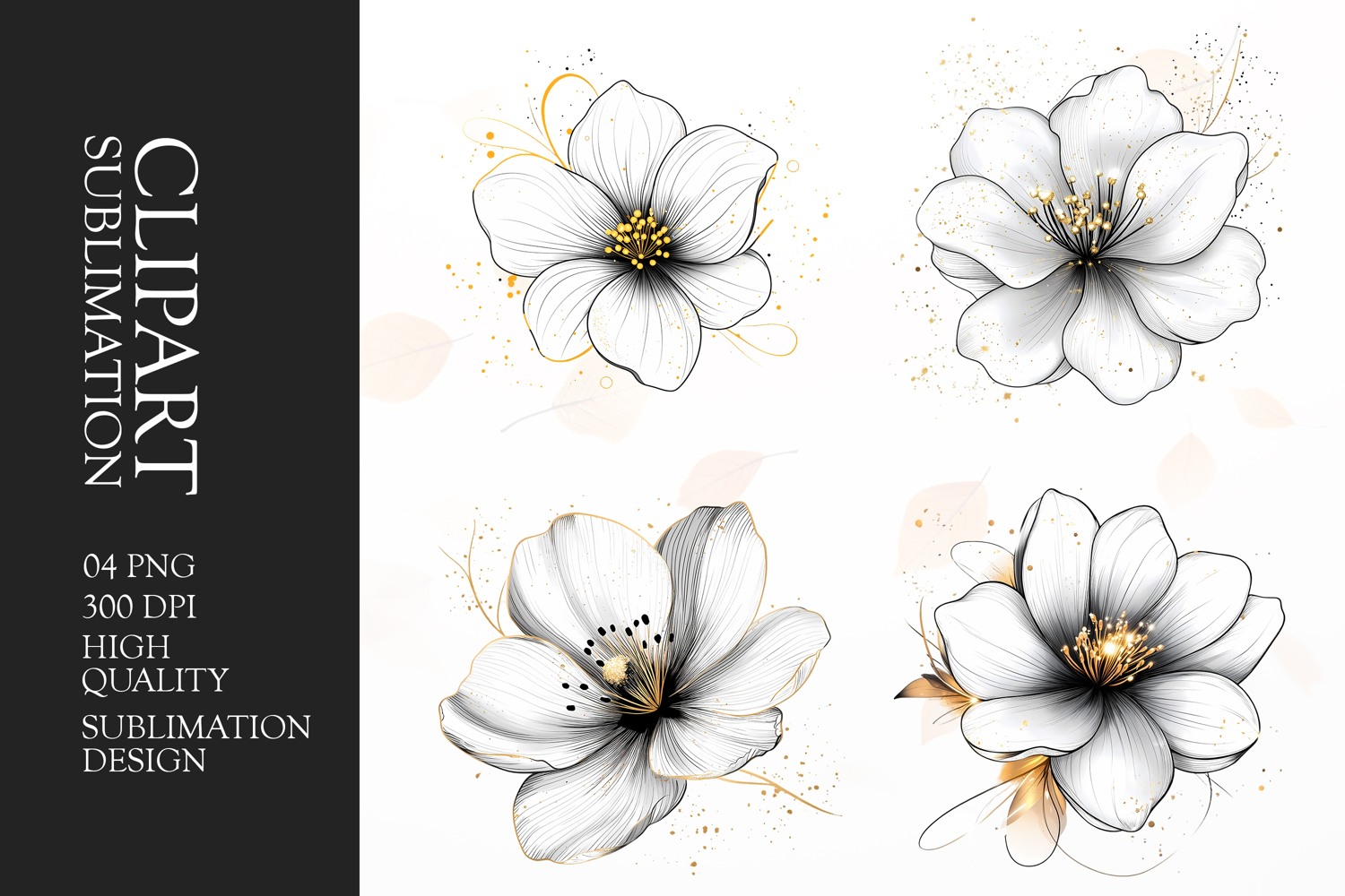 Similar Design Products to White Petal Botanical Art Clipart Sublimation PNG