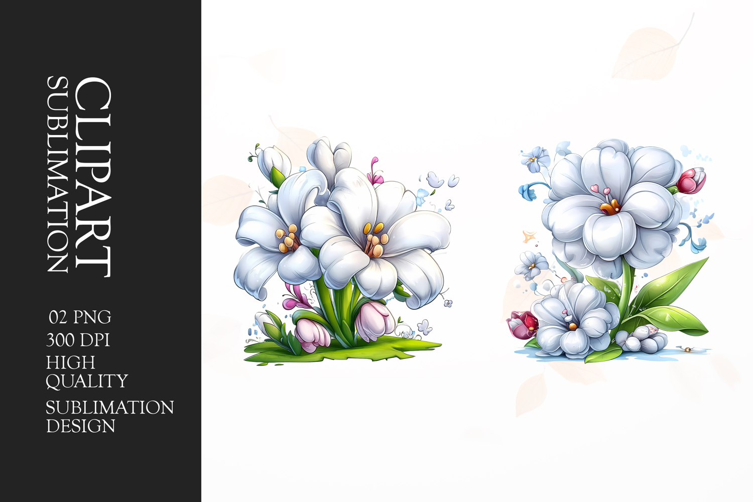 White Bloom with Blue Accents Clipart Sublimation PNG example image 1