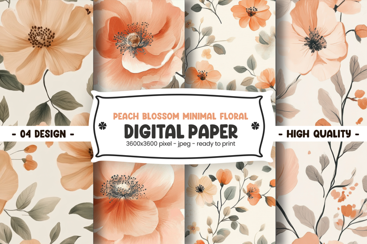 Digital Paper Printable Paper Floral Design Peach Blossom Blossom Pattern Soft Peach Elegant Design Simple Floral Minimalist Flower Minimal Floral