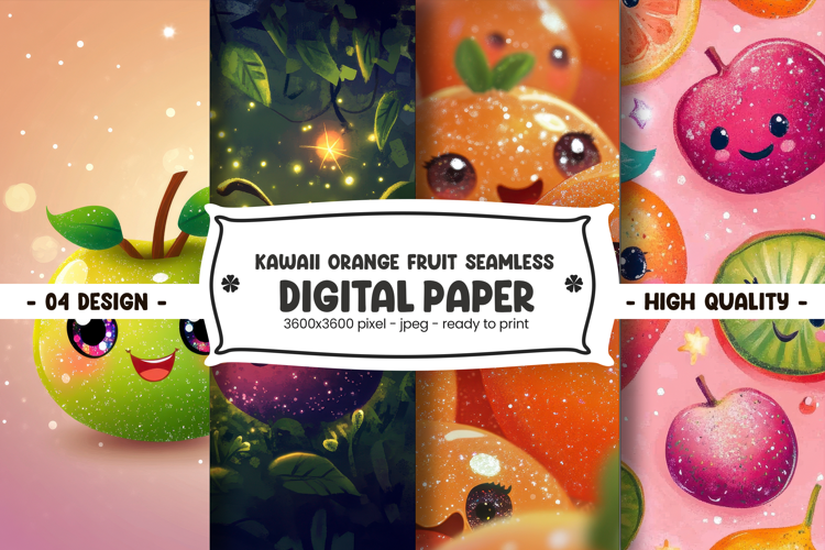 Kawaii orange fruit seamless digital paper example image 1