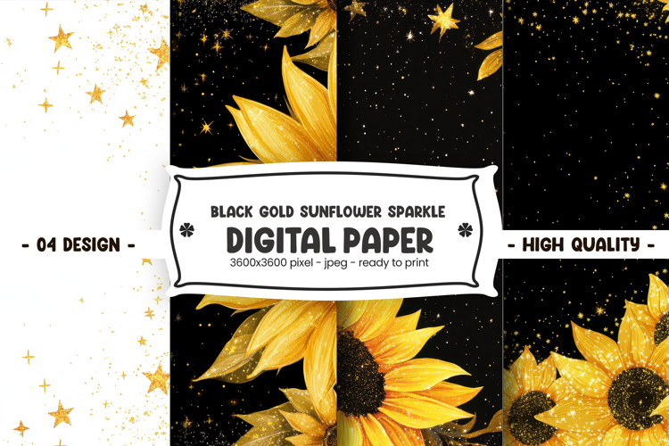 Similar Design Products to Black gold sunflower sparkle digital paper