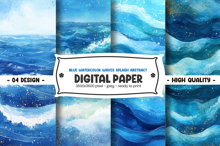 Similar Design Products to Blue watercolor waves splash abstract digital paper