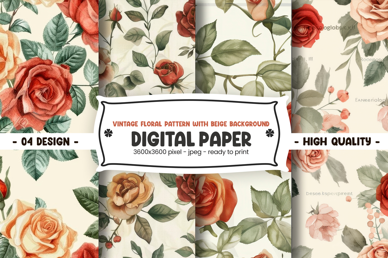 Similar Design Products to Vintage floral pattern with beige background digital paper
