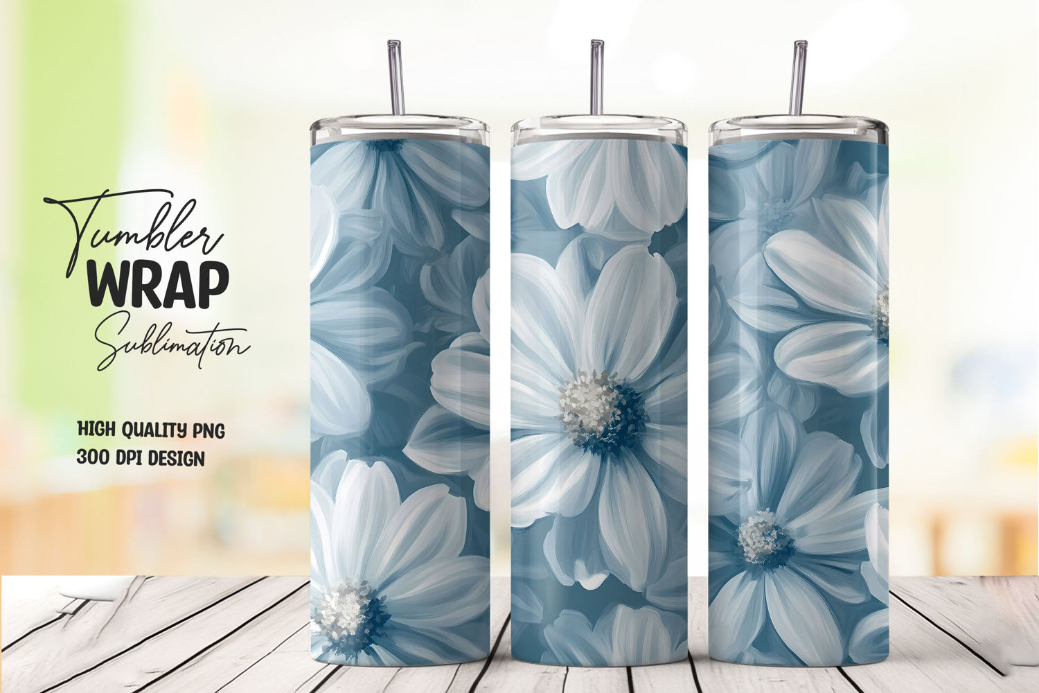 Flower Bloom Blue Png White Pastel Daisy Wrap Sublimation Tumbler