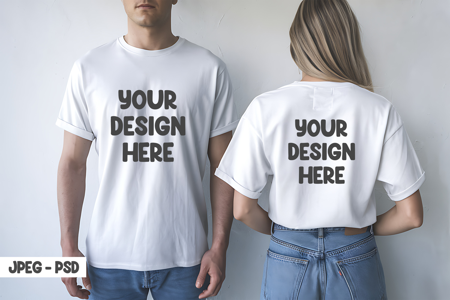 White T-Shirt Couple Mockup Front and Back Jpeg & Psd